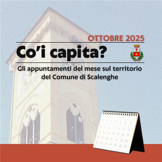 "Co’a-i capita?" torna per aggiornarvi sulle nuove iniziative ed eventi promossi dall’Amministrazione e/o dai vari Enti e Associazioni Scalenghesi sul nostro territorio: seguitela sui social o nelle bacheche per rimanere sempre aggiornati!